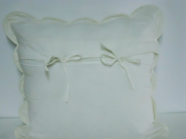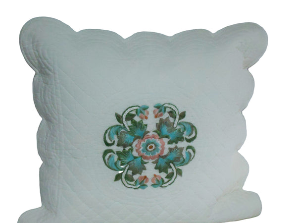 Beautiful Quilted Pillow Cover Machine Embroidered with Silk Threads and finished with Scalloped edges 16x16 inches.