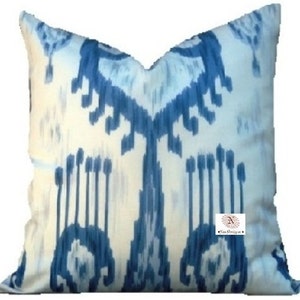 Robert Allen Ikat Print Khandar Indigo Decorative Throw Accent Indoor Pillow Cover with Hidden Zipper -